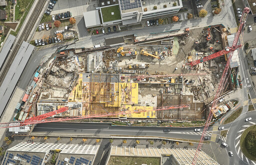 Ein faszinierender Blick aus der Vogelperspektive bietet einen Überblick über die Grossbaustelle.
