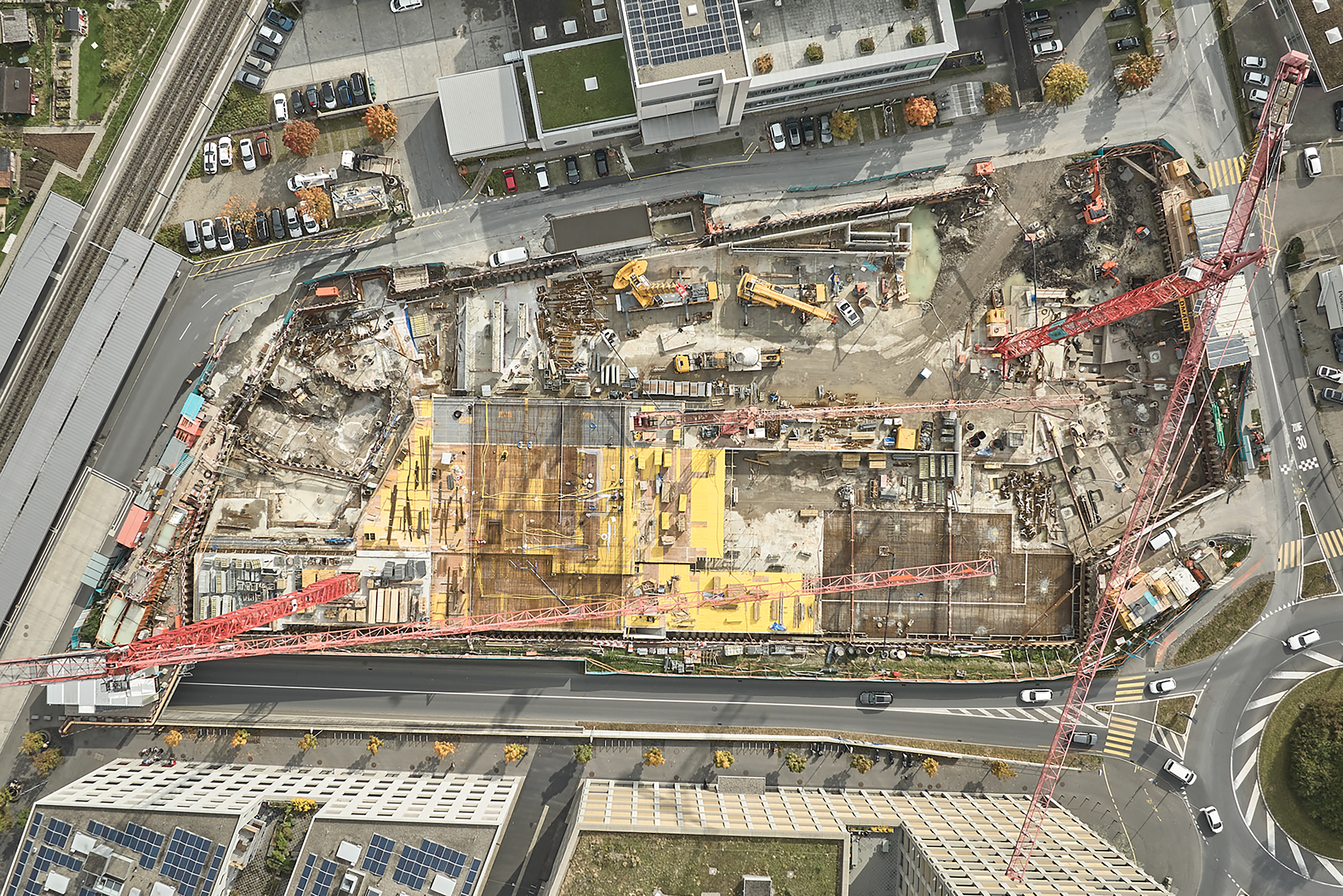Die Bauarbeiten der PILATUS ARENA sind nun seit knapp einem Jahr im Gang, bereits sind die ersten Strukturen zu erkennen. Im Untergeschoss ist die gegen 4'000 Tonnen schwere Bodenplatte kurz vor der Fertigstellung und bildet das Fundament für die weiteren Baumeisterarbeiten. Nach Abschluss des Erdgeschosses im Dezember 2023 wächst die PILATUS ARENA dann ab Januar 2024 endgültig in die Höhe. Die Grundstruktur der grössten multifunktionalen Indoorsport- und Eventhalle der Zentralschweiz wird bis zum kommenden Sommer erstellt sein, anschliessend beginnt der Innenausbau. Klappt weiterhin alles wie geplant, steht der offiziellen Eröffnung der Pilatus Arena im zweiten Halbjahr 2025 nichts im Weg.
